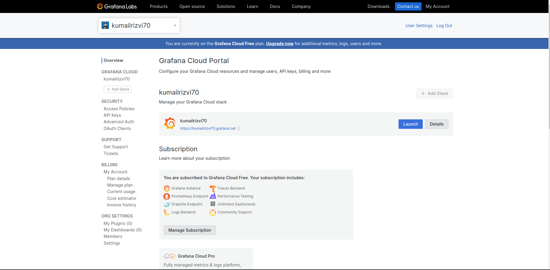 Step-2: Sign Up for Grafana Cloud
