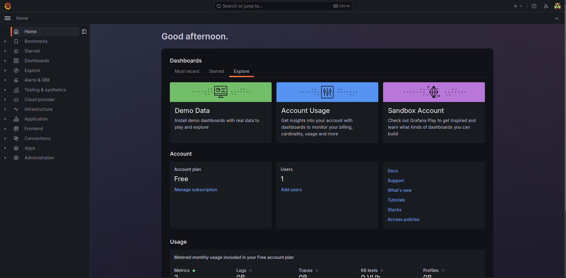 - Before anything, you’ll need to sign up for a Grafana Cloud account. Grafana offers free and paid tiers, so you can choose the one that fits your needs. After signing up, you need to configure your monitoring environment