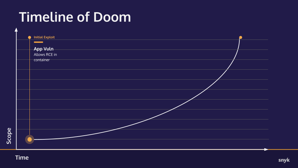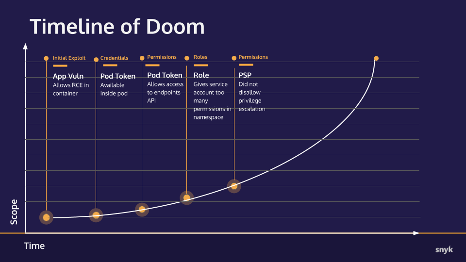 This is a pattern that almost every major exploit of recent years has followed: an application vulnerability gives an attacker the initial foothold and then application and infrastructure level misconfigurations allow that attacker to spread in the other parts of your cluster.