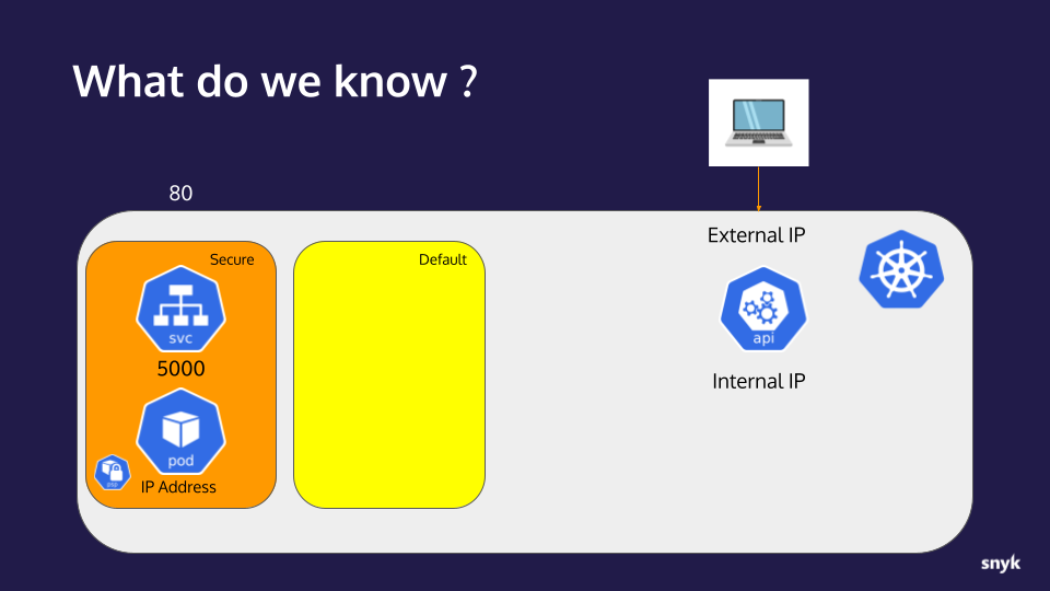 secureNamespace is using the defaultautomountServiceAccountTokensetting oftrue - Using a found ServiceAccount token, we were able to connect to the cluster’s api-server