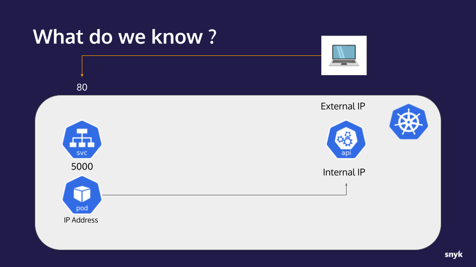 - The application is behind a service listening on port 5000
