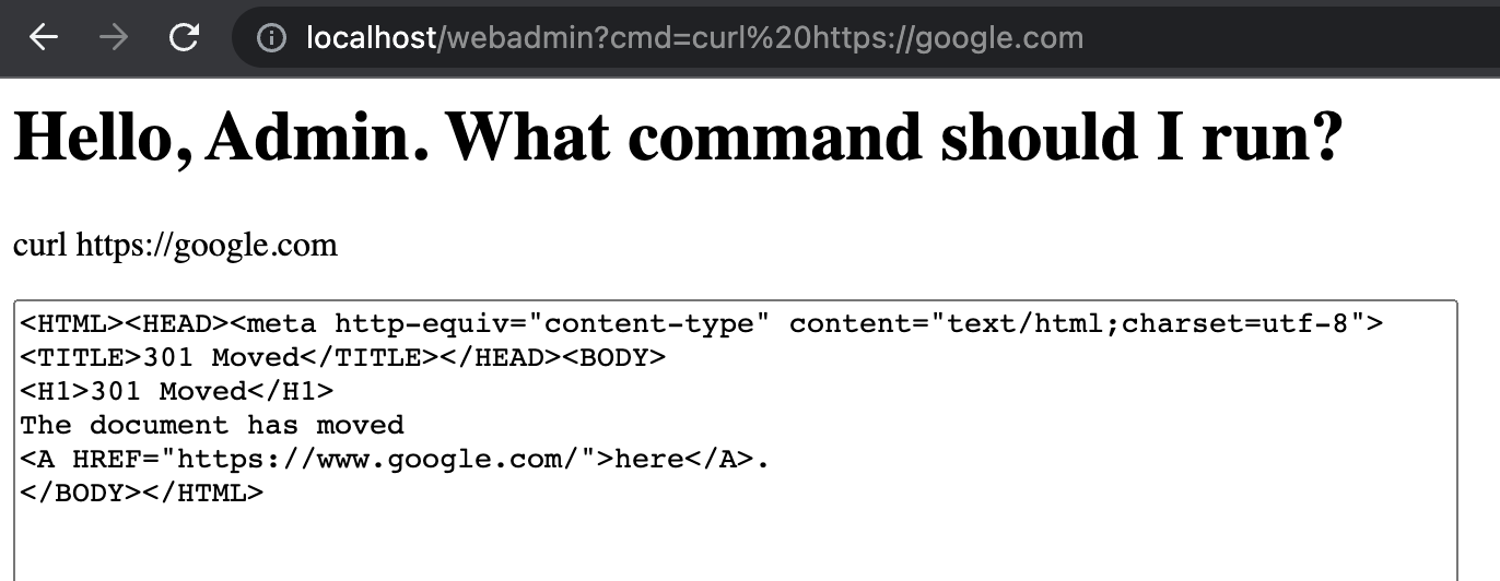 curlavailable: http://localhost/webadmin?cmd=curl%20https://google.com